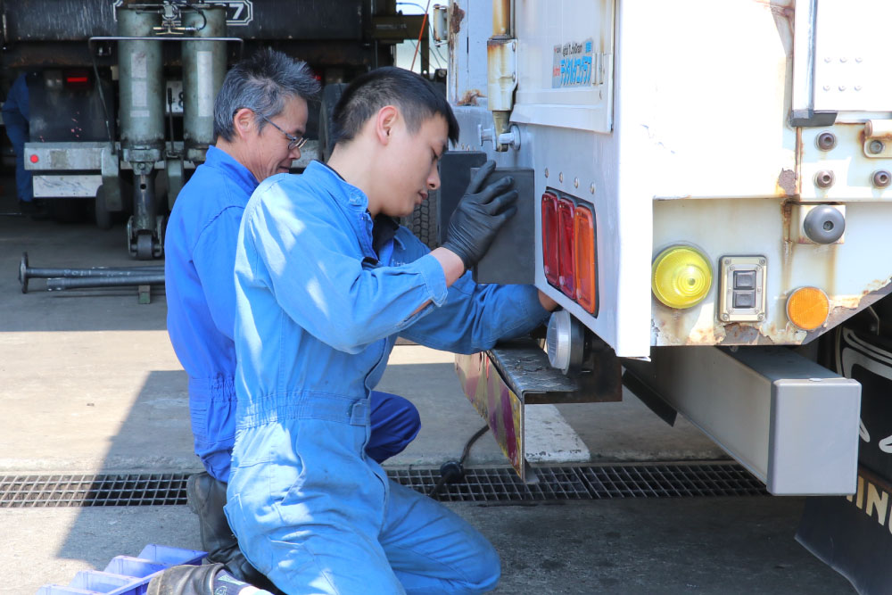 自分が直したトラックを見かけると、とても嬉しいし、大型車の整備をするということは、地域の物流を支える仕事だと思っています。